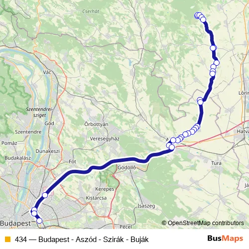 Click here to view the nearest 434 - Budapest - Aszód - Szirák - Buják bus stop.