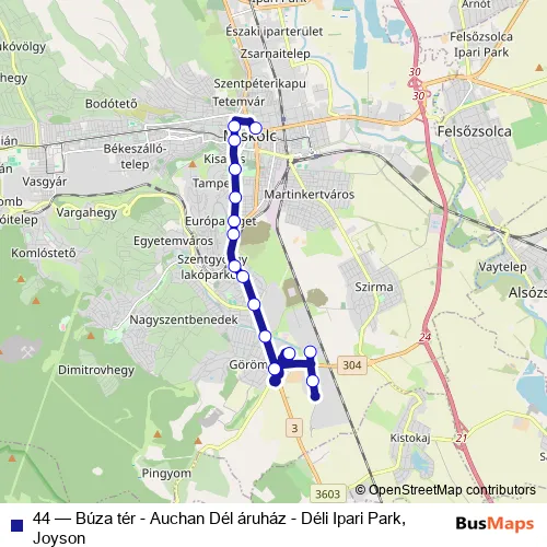 Bus 44 - Búza tér - Auchan Dél áruház - Déli Ipari Park, Joyson: Full Schedule in Miskolc