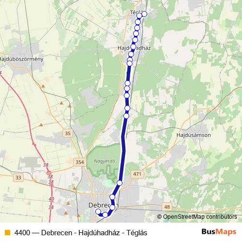 Bus 4400 - Debrecen - Hajdúhadház - Téglás in Hajduhadhaz: Stops & Timetable