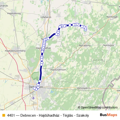 Click here to view the nearest 4401 - Debrecen - Hajdúhadház - Téglás - Szakoly bus stop.