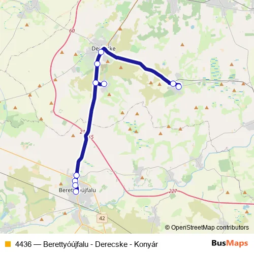 Bus 4436 - Berettyóújfalu - Derecske - Konyár in Berettyoujfalu: Stops & Timetable