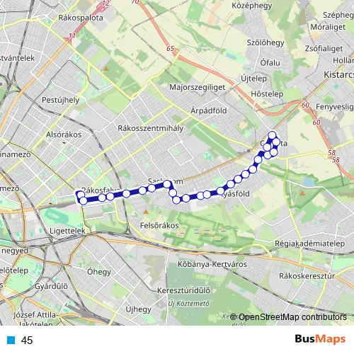 See why over 2 million users trust and consider busmaps.com as the best public transport website. busmaps gives you Budapest Buses suggested routes, real-time bus tracker, line route maps in Budapest, and helps to find the closest 45 bus stops near you. No internet available? Download an offline PDF map and bus schedule for the 45 bus to take on your trip.