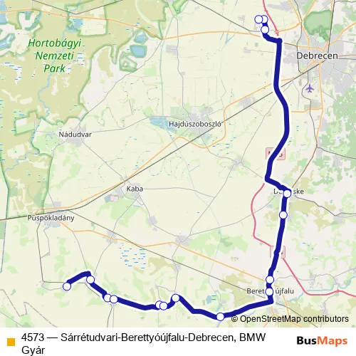 Click here to view the nearest 4573 - Sárrétudvari-Berettyóújfalu-Debrecen, BMW Gyár bus stop.