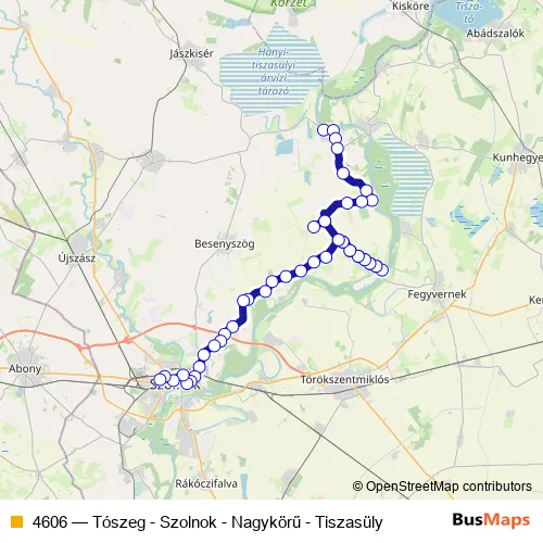 Bus 4606 - Tószeg - Szolnok - Nagykörű - Tiszasüly in Szolnok: Stops & Timetable