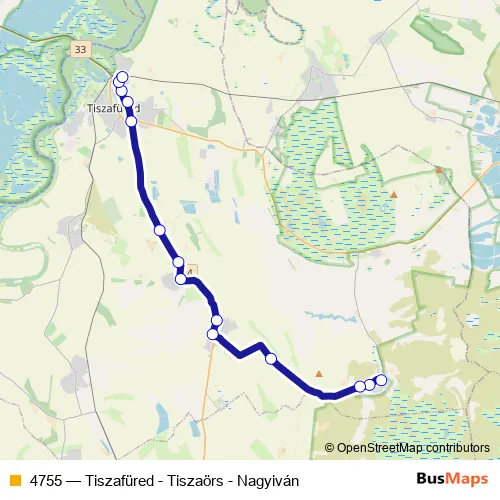 Click here to view the nearest 4755 - Tiszafüred - Tiszaörs - Nagyiván bus stop.