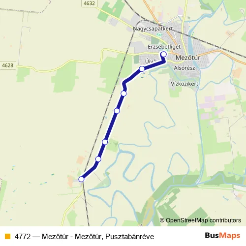 Bus 4772 - Mezőtúr - Mezőtúr, Pusztabánréve in Mezotur: Stops & Timetable