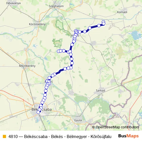 Click here to view the nearest 4810 - Békéscsaba - Békés - Bélmegyer - Körösújfalu bus stop.