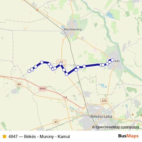 Bus 4847 - Békés - Murony - Kamut Schedule in Bekescsaba