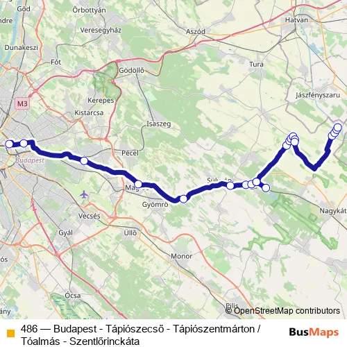 Bus 486 - Budapest - Tápiószecső - Tápiószentmárton / Tóalmás - Szentlőrinckáta: Full Schedule in Toalmas
