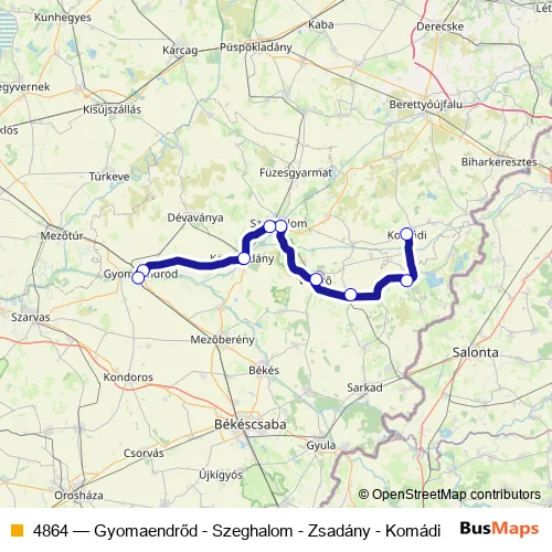 Click here to view the nearest 4864 - Gyomaendrőd - Szeghalom - Zsadány - Komádi bus stop.