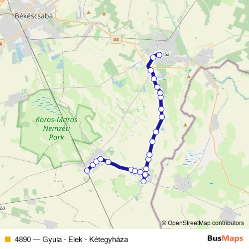 Dózsa utca - Gyulai út - Kétegyházi út - Lőkösházi út - Gyulai út - Eleki út - Kétegyházi út - Vásárhelyi Pál utca