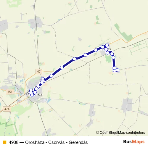 Bus 4938 - Orosháza - Csorvás - Gerendás: Full Schedule in Oroshaza