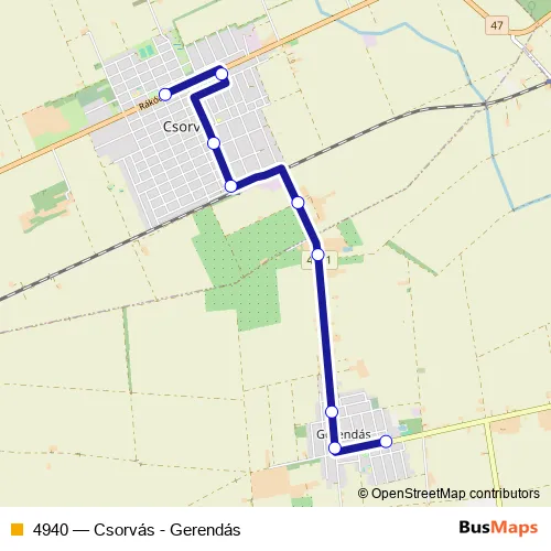 Click here to view the nearest 4940 - Csorvás - Gerendás bus stop.