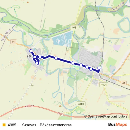 Bus 4985 - Szarvas - Békésszentandrás Schedule in Szarvas