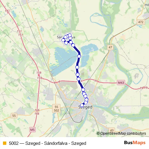 Bus 5002 - Szeged - Sándorfalva - Szeged Schedule in Szeged