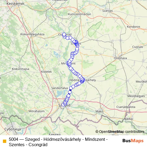 Bus 5004 - Szeged - Hódmezővásárhely - Mindszent - Szentes - Csongrád in Szeged: Stops & Timetable