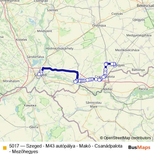 Bus 5017 - Szeged - M43 autópálya - Makó - Csanádpalota - Mezőhegyes: Full Schedule in Mako