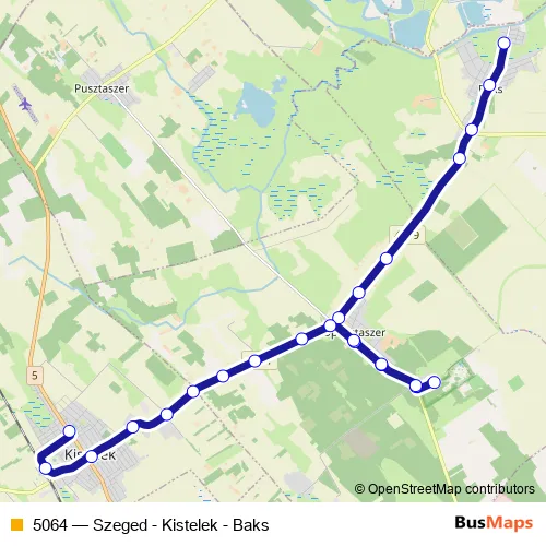 Bus 5064 - Szeged - Kistelek - Baks in Kistelek: Stops & Timetable