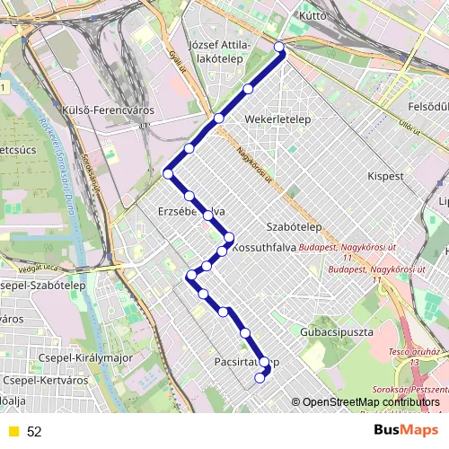 See why over 2 million users trust and consider busmaps.com as the best public transport website. busmaps gives you Budapest Trams suggested routes, real-time bus tracker, line route maps in Budapest, and helps to find the closest 52 tram stops near you. No internet available? Download an offline PDF map and bus schedule for the 52 tram to take on your trip.