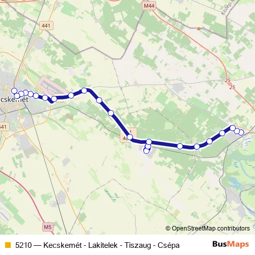 See why over 2 million users trust and consider busmaps.com as the best public transport website. busmaps gives you Kecskemet Buses suggested routes, real-time bus tracker, line route maps in Kecskemet, and helps to find the closest 5210 bus stops near you. No internet available? Download an offline PDF map and bus schedule for the 5210 bus to take on your trip.