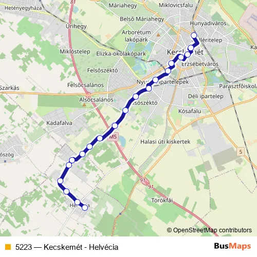 Bus 5223 - Kecskemét - Helvécia in Kecskemet: Stops & Timetable