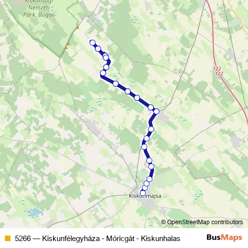 The first stop of the 5266 bus route is Kiskunhalas, autóbusz-állomás and the last stop is Kiskunfélegyháza, autóbusz-állomás. 5266 (Kiskunfélegyháza - Móricgát - Kiskunhalas) is operational during everyday.