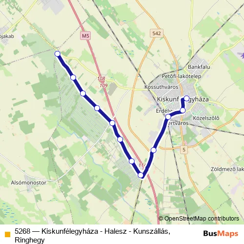 Bus 5268 - Kiskunfélegyháza - Halesz - Kunszállás, Ringhegy Schedule in Kiskunfelegyhaza