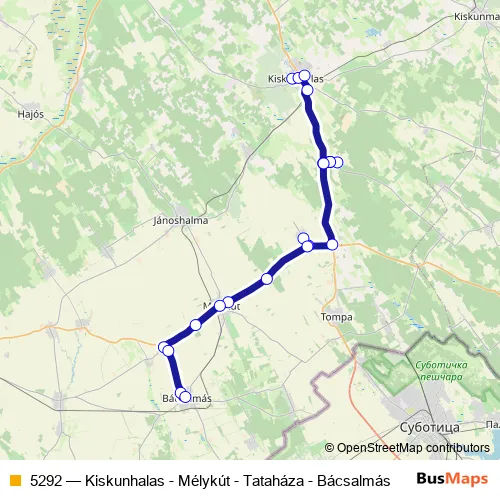 Bus 5292 - Kiskunhalas - Mélykút - Tataháza - Bácsalmás in Kiskunhalas: Stops & Timetable