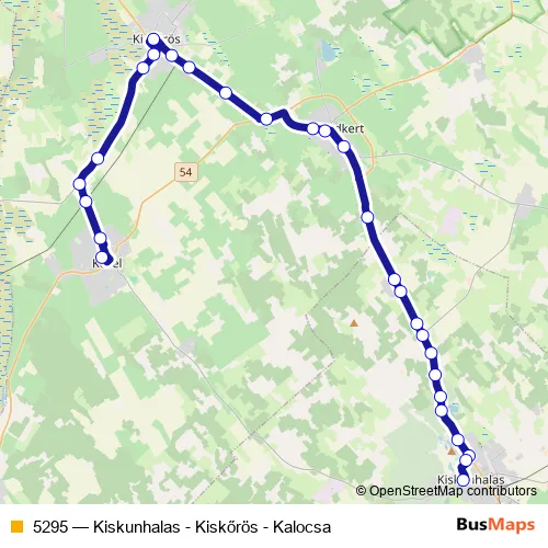 The first stop of the 5295 bus route is Kiskőrös, városháza and the last stop is Kiskunhalas, autóbusz-állomás. 5295 (Kiskunhalas - Kiskőrös - Kalocsa) is operational during everyday.