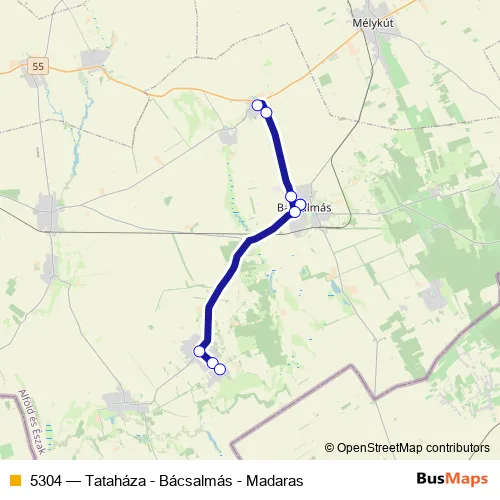 Click here to view the nearest 5304 - Tataháza - Bácsalmás - Madaras bus stop.