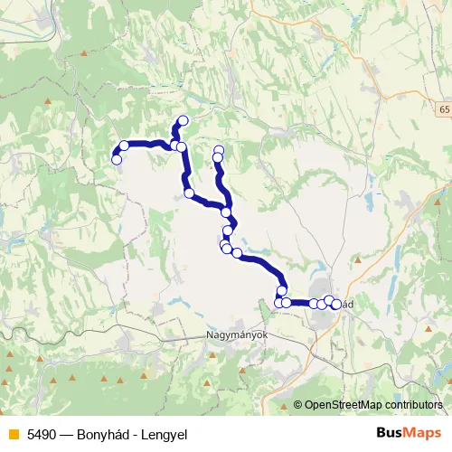 The first stop of the 5490 bus route is Lengyel, autóbusz-váróterem and the last stop is Bonyhád, autóbusz-állomás. 5490 (Bonyhád - Lengyel) is operational during everyday.