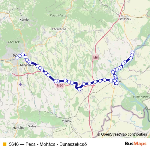 Bus 5646 - Pécs - Mohács - Dunaszekcső in Mohacs: Stops & Timetable