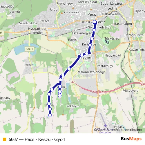 Bus 5667 - Pécs - Keszü - Gyód: Full Schedule in Pecs