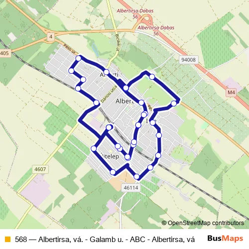 Bus 568 - Albertirsa, vá. - Galamb u. - ABC - Albertirsa, vá in Albertirsa: Stops & Timetable