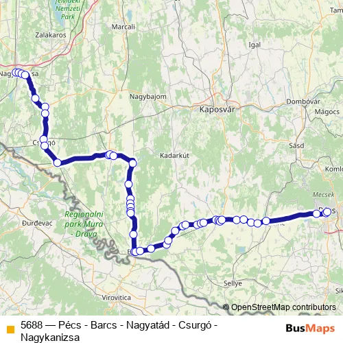 5688 Bus - Pécs - Barcs - Nagyatád - Csurgó - Nagykanizsa