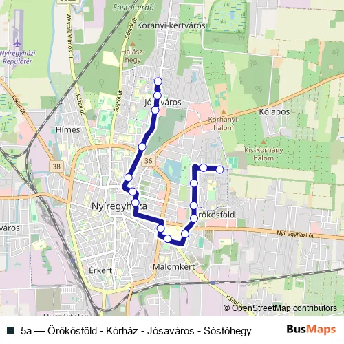 Bus 5a - Örökösföld - Kórház - Jósaváros - Sóstóhegy in Nyiregyhaza: Stops & Timetable
