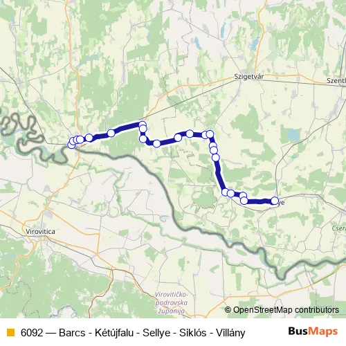 Bus 6092 - Barcs - Kétújfalu - Sellye - Siklós - Villány in Barcs: Stops & Timetable