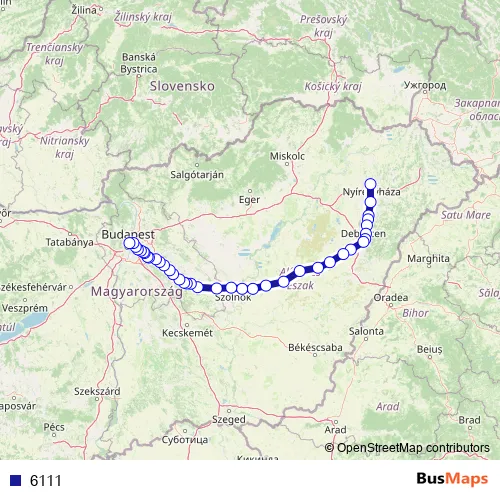 The first stop of the 6111 rail route is Nyíregyháza and the last stop is Budapest-Nyugati. 6111 is operational during everyday.