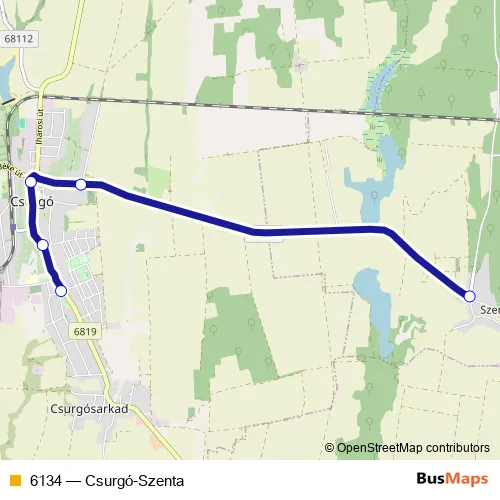 The first stop of the 6134 bus route is Csurgó, autóbusz-állomás and the last stop is Szenta, autóbusz-váróterem. 6134 (Csurgó-Szenta) is operational during everyday.