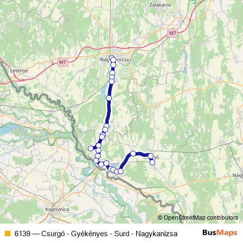 Bus 6139 - Csurgó - Gyékényes - Surd - Nagykanizsa: Full Schedule in Legrad