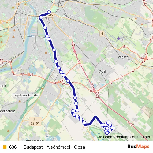 Bus 636 - Budapest - Alsónémedi - Ócsa in Budapest: Stops & Timetable