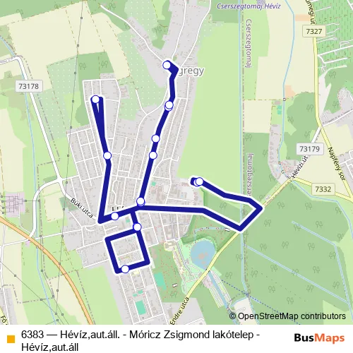 Click here to view the nearest 6383 - Hévíz,aut.áll. - Móricz Zsigmond lakótelep - Hévíz,aut.áll bus stop.