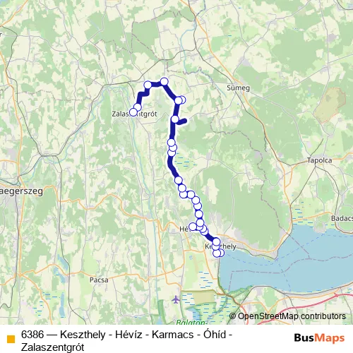 Click here to view the nearest 6386 - Keszthely - Hévíz - Karmacs - Óhíd - Zalaszentgrót bus stop.