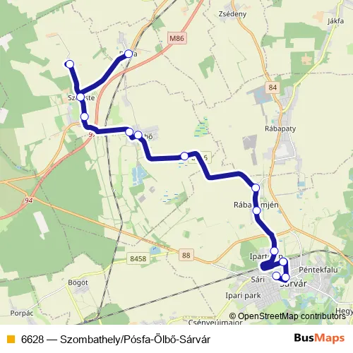 Bus 6628 - Szombathely/Pósfa-Ölbő-Sárvár: Full Schedule in Szombathely