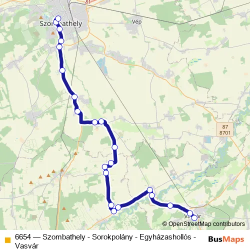 Bus 6654 - Szombathely - Sorokpolány - Egyházashollós - Vasvár: Full Schedule in Szombathely