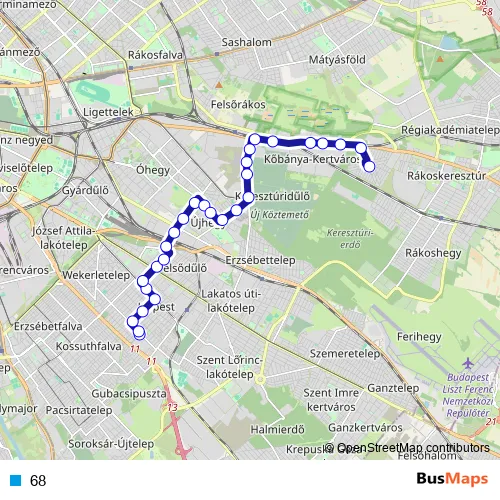 See why over 2 million users trust and consider busmaps.com as the best public transport website. busmaps gives you Budapest Buses suggested routes, real-time bus tracker, line route maps in Budapest, and helps to find the closest 68 bus stops near you. No internet available? Download an offline PDF map and bus schedule for the 68 bus to take on your trip.