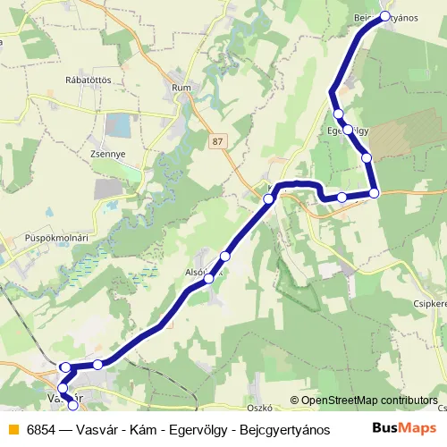 6854 Bus - Vasvár - Kám - Egervölgy - Bejcgyertyános