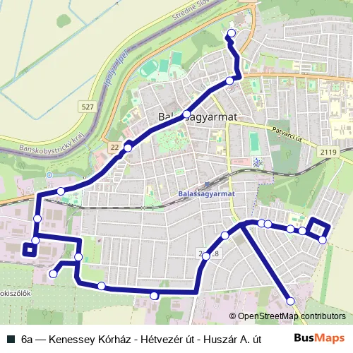 Bus 6a - Kenessey Kórház - Hétvezér út - Huszár A. út: Full Schedule in Balassagyarmat