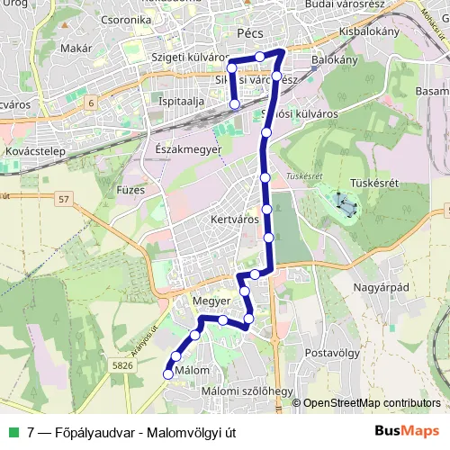 Bus 7 - Főpályaudvar - Malomvölgyi út Schedule in Pecs