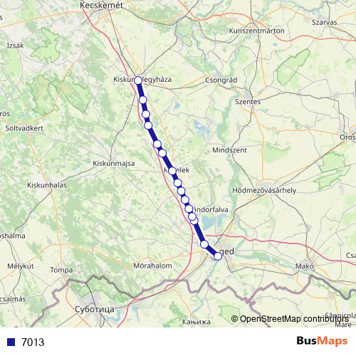 The first stop of the 7013 rail route is Szeged and the last stop is Kiskunfélegyháza. 7013 is operational during everyday.